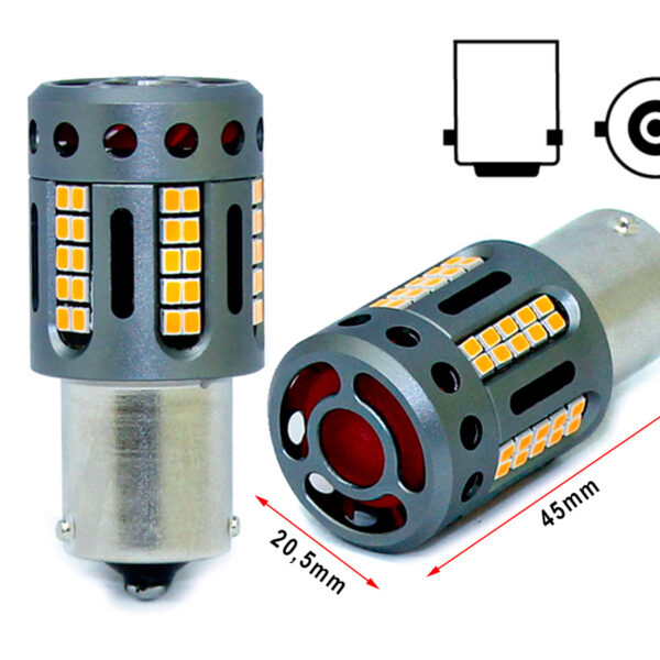 Lampada Led 1156 BAU15S PY21W 100% Canbus 12V 21W Effettiva Arancione Piedi Storti Con Ventola In Testa