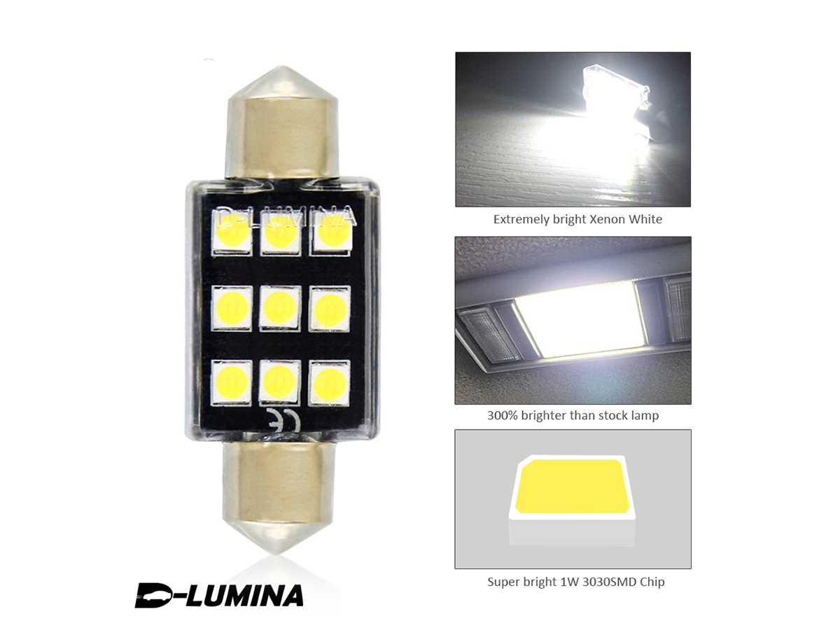4 Lampada Led T11 Canbus 41mm 12V 2W Effettivo Con 6 Smd 3030 Bianco 6000K No Polarita