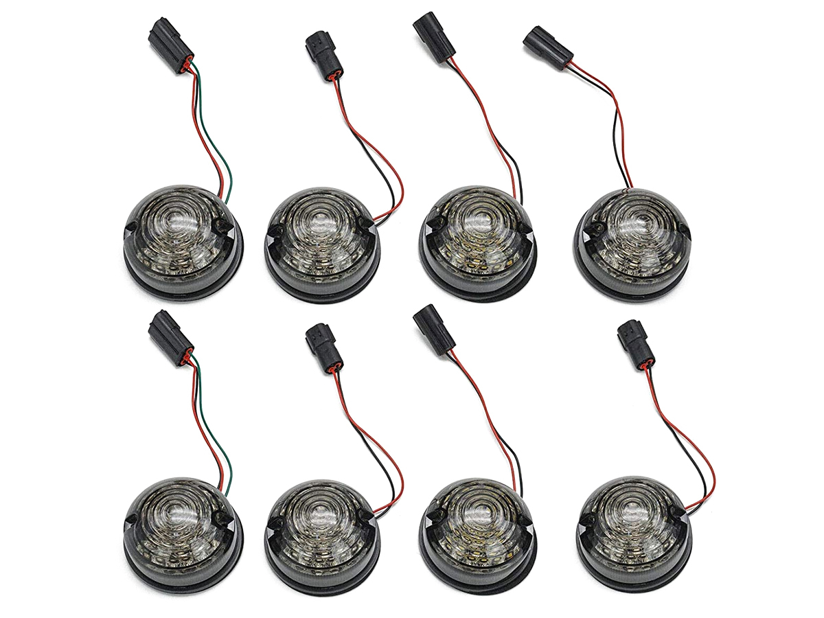 Kit 8 Fanali Led Anteriore Posteriori Laterali Lente Nero Fume Per Land Rover Defender 1983-2016 Compreso Relay CF14