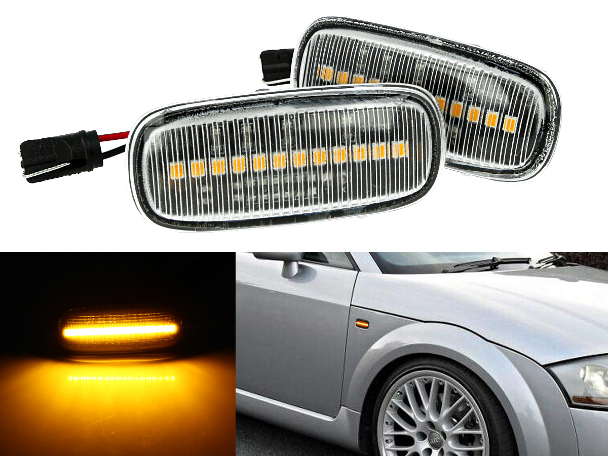 Kit Freccia Laterale a Led Side Marker Lente Trasparente Luce Arancione Per Audi TT A2 8L A3 S3 B5 A4 S4 RS4 A6 S6 C5