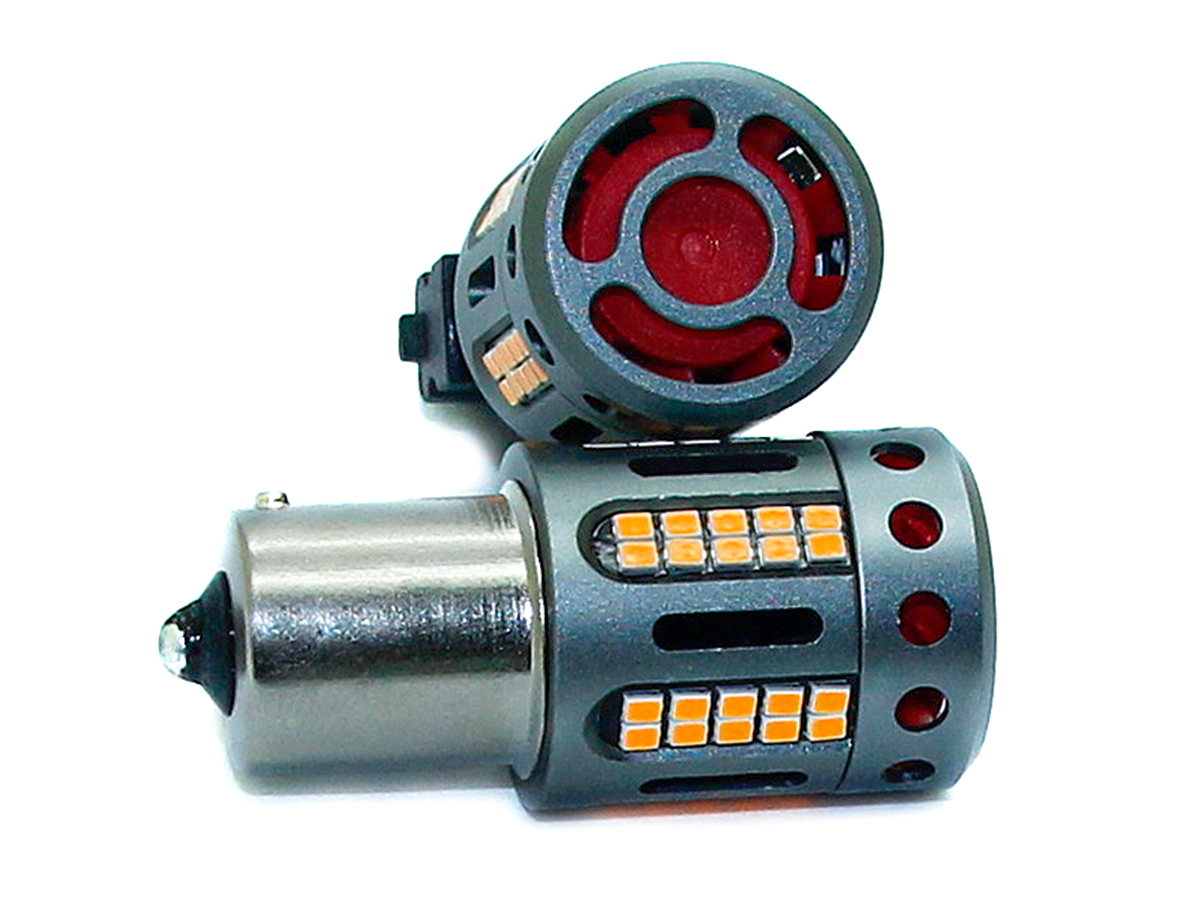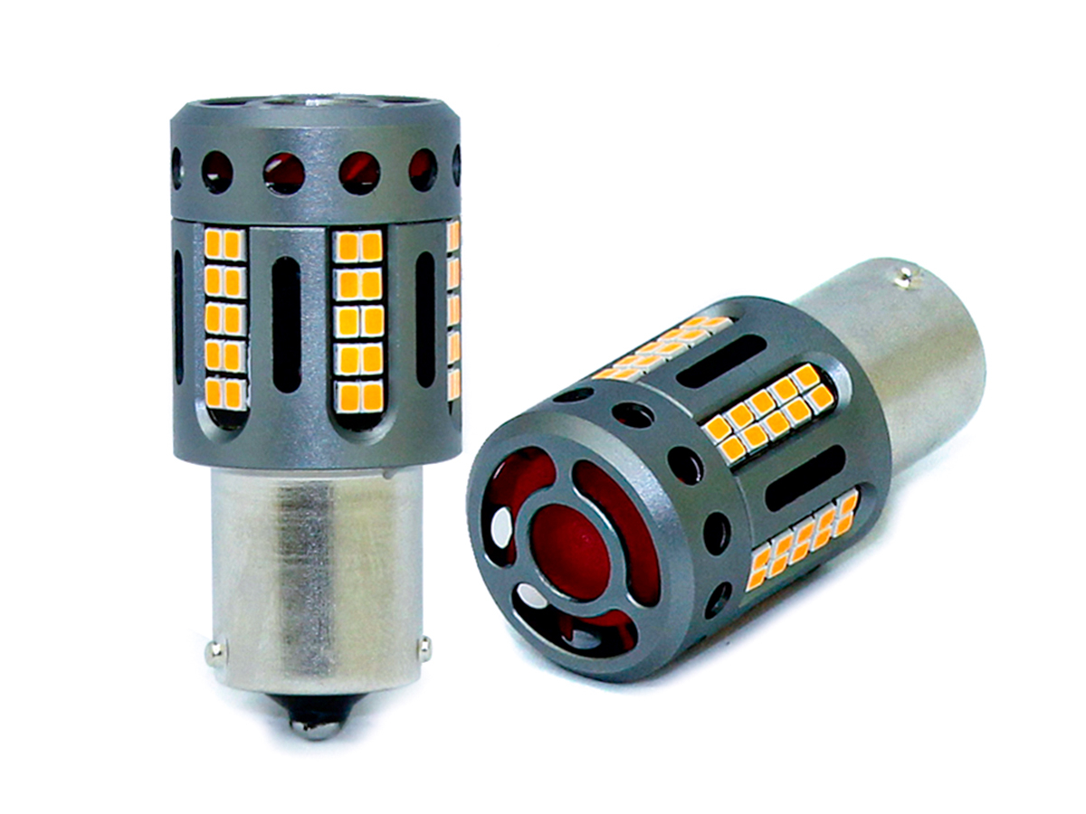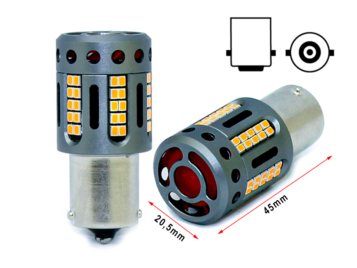 Lampada Led 1156 BA15S P21W 100% Canbus 12V 21W Effettiva Arancione Piedi Dritti Con Ventola In Testa