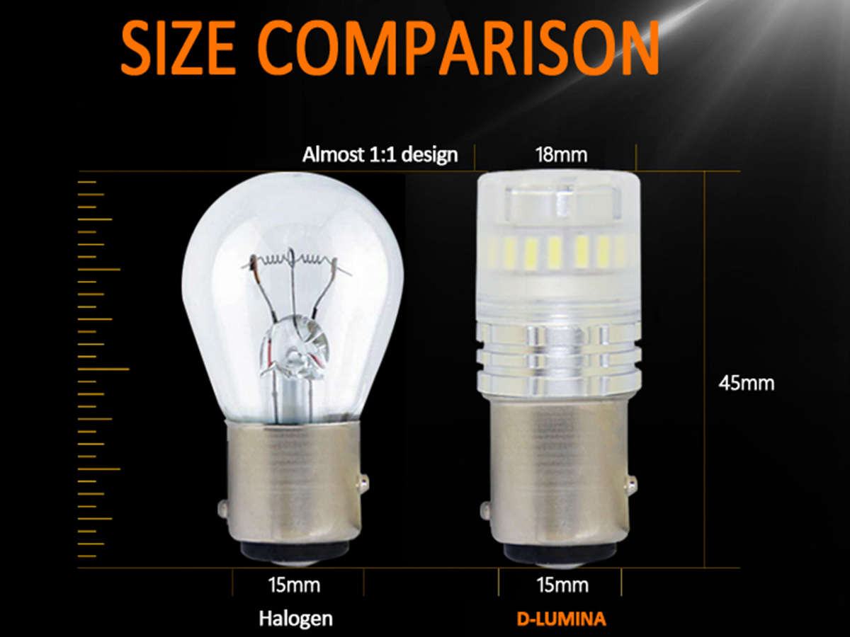 • 2 Pezzi Lampadine A Led Attacco BAY15D 1157 P21/5W DC 12V-18V Consumo Effettivo 4W Per Luce Forte e 1W Per Luce Debole,Impermeabile IP67.