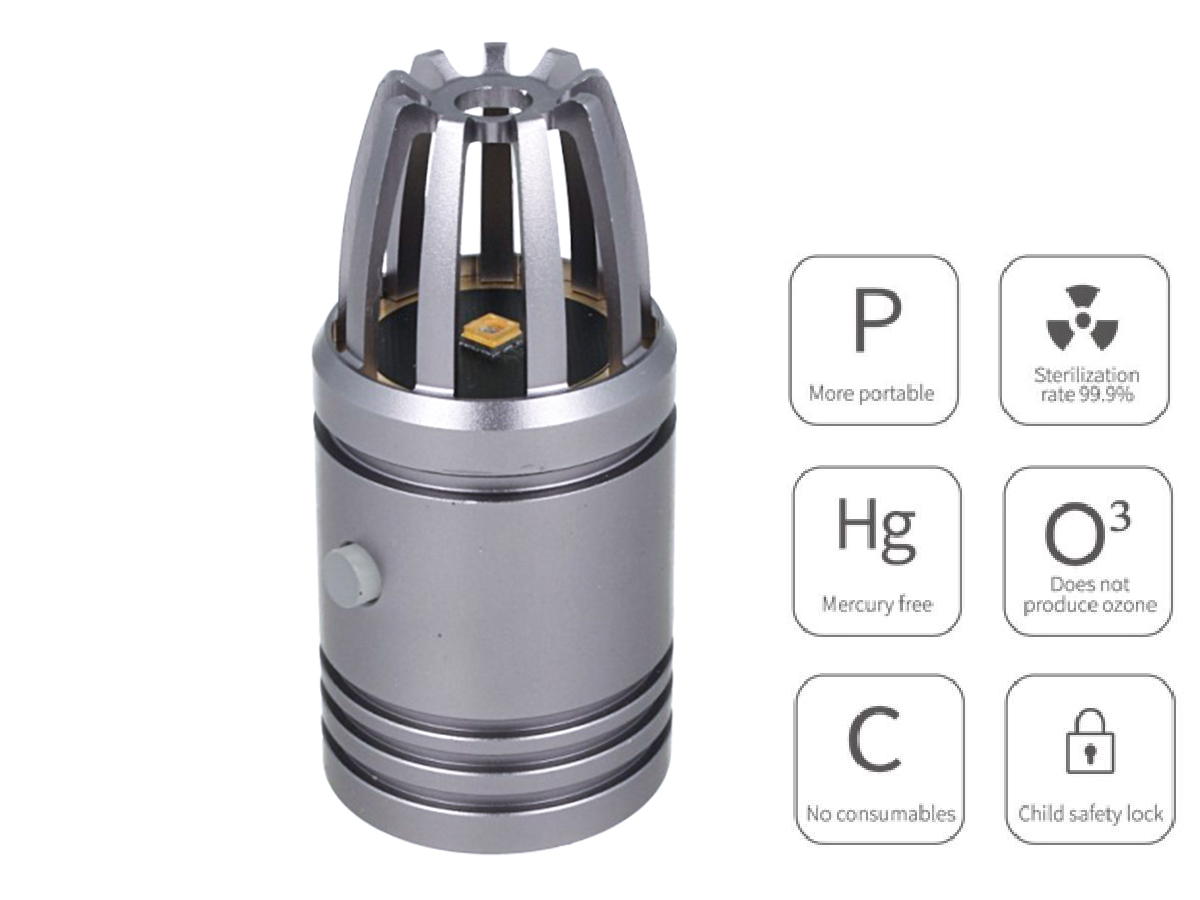 Tipo di led:UVC 250-280nm, Input: 5V 1A, Capacità Batteria: 400mAh,Dimensioni: 27X27X58mm, Peso: Solo 32g, Cavo USB incluso, Alimentatore escluso, Tempo di Ricarica: Circa 20 Minuti, Massimo Si Utilizza 20 Volte Con Batteria Piena